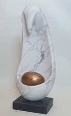 Till mina skulpturer i granit, diabas, porfyr, och marmor använder jag gärna sten som jag hittar i naturen. Jag läser av stenen och ser hur form och struktur ger idé och förutsättning till färdigt resultat, gärna med organiska former. Favoritsten är diabas som med sin grafiska svärta ger skulpturen ännu en dimension på ytor och plan. Efter utbildning i bronsgjutning gjuter jag själv även mina skulpturer i brons och aluminium. Till det har jag egen smältugn och övrig utrustning. Då jag tidigare hållit på med konsthantverk ser jag förutom konstnärlig kvalitet också det viktiga i ett väl utfört hantverk. På min hemsida bernteriksson.se kan man se en del av mina skulpturer samt CV med utbildning och utställningar.