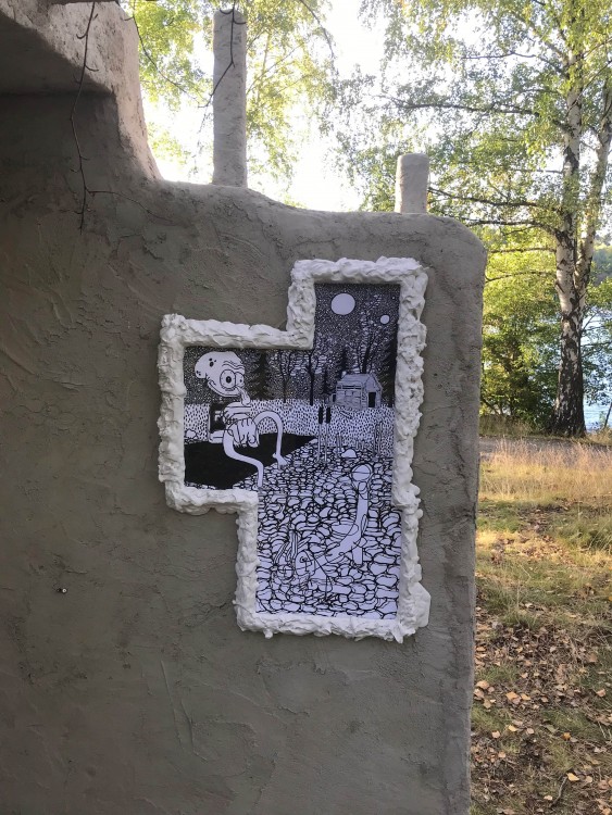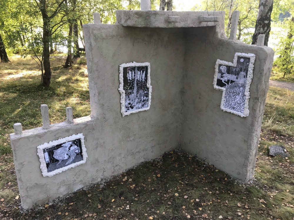 Betongskulptur med Teckningar. (detalj) Bläckis vid Walden