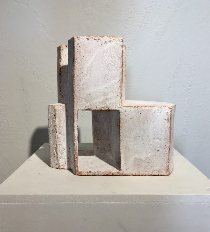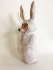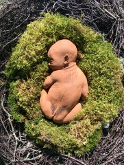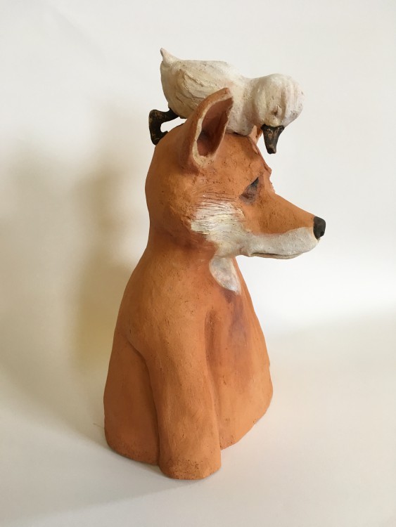 Jag använder lera för att berätta i form och färg. Mina bästa redskap är kaveln och fruktkniven. Efter bränning målar jag objekten.