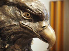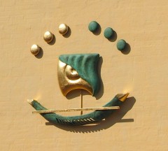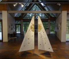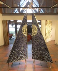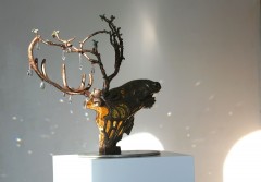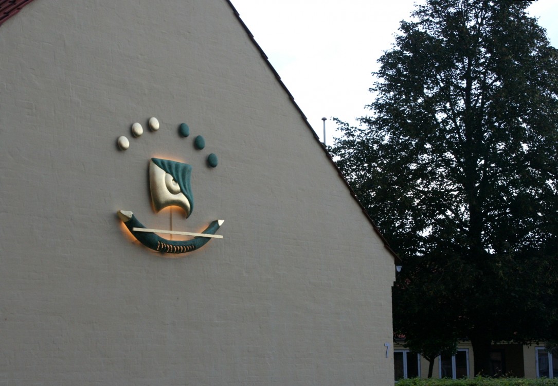 Night disappeared, dawn broke and they sailed constantly (The Cloud Sailer), Bronze, partly gilded (23k), Internal LED lighting, Size 170x140 cm, Permanent sculpture, Nörregade 7, centre of Ølgod, Denmark, Purchased in 2019 by the Poul Erik Bech Fund.