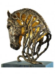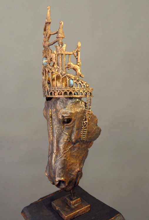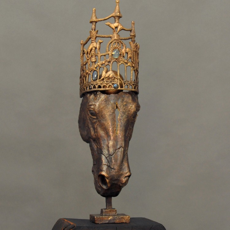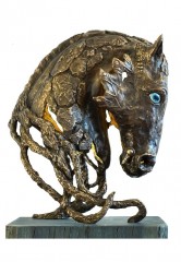 I huvudet på en häst / In the mind of a horse, 2020, Brons o sten, höjd 71, exkl platta, unik.