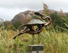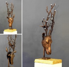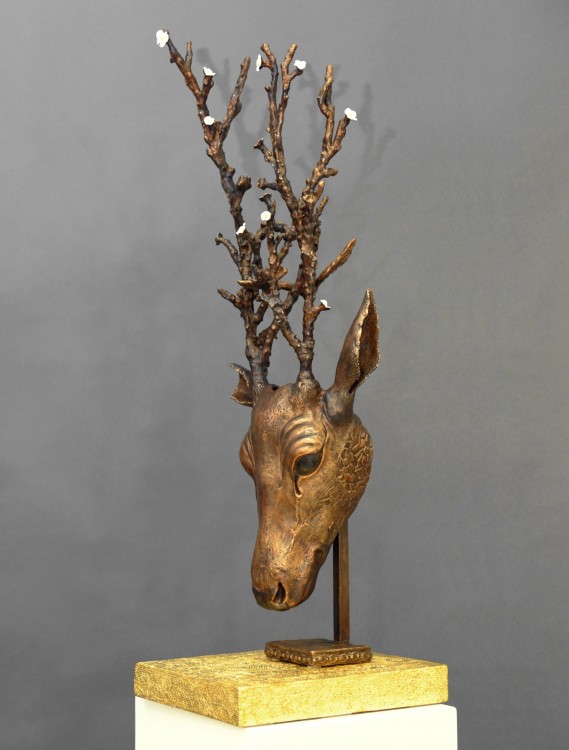 Livet återvänder / Life Returns, 2020, Brons (platta förgylld, 23 K), storlek 91x31x31 cm exkl platta, unik.