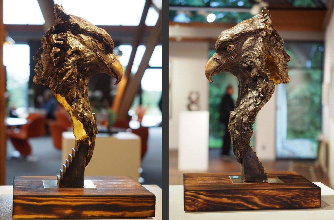 Saknad vän / Miss You my friend, Brons (förgylld insida, 23K), Storlek: bronsskulptur 38,5x32,5x20cm. Unik.