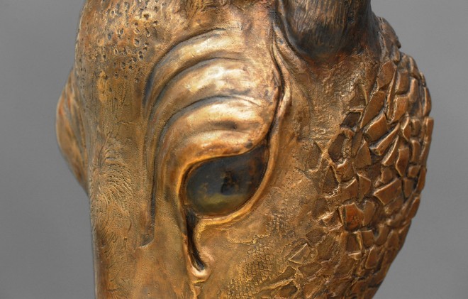 Drömmar om en annan existens / Dreams of another existence, 2021, Brons (förgylld inuti 23K), Storlek: 44x22x22 cm, exkl platta, Foto: Ulf Johnsson.