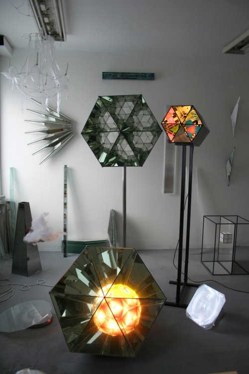 Jag arbetar med glas, speglar, och konstruktion där jag gör mina beräkningar i Cad och 3D applikationer. Vidare så experimenterar jag som alltid med rörlig bild, ljus, reflexer och olika material.