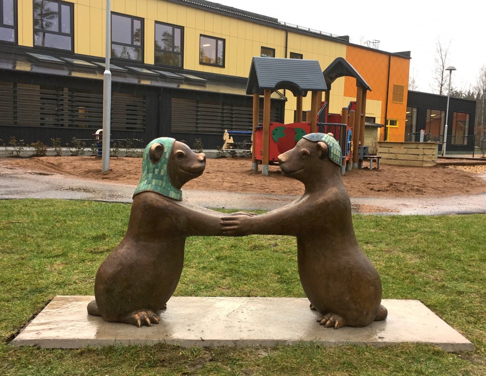 Gestaltningen symboliserar ett samarbete och en lek mellan barn fra?n olika bakgrund men mest den fantasi som vi alla har gemensamt.