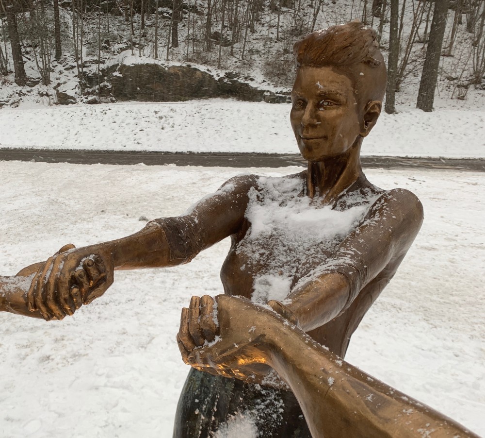 Skulpturgruppen, Att se sig själv i andra, bygger på en konstruktion av människor som håller varandra i händerna och lutar sig bakåt. Det framgår tydligt att släpper den ena taget så faller de andra. Symboliskt vill den visa på vikten av samarbetet och vårt beroende men också den rikedom som vi människor har möjlighet att ge varandra. Titeln är lånad från Sven-Eric Liedmans bok: Att se sig själv i andra, om solidariteten.