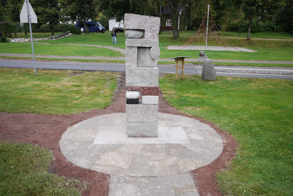 Kjennetegn er en skulpturinstallasjon der de taktile referansene er viktige. Prosjektet ble til etter en workshop med døvblinde på Signo i Andebu. Installasjon en består av seks sirkler. I den største sirkelen, Øye, ligger en nedfelt skulptur i svart diabas. Figurer er sandblåst inn i den polerte skulpturen og i sirkelen som ligger rundt. I den mellomstore sirkelen ligger sitteskulpturen Grep. Grep er avtrykket etter et handtrykk i leire. Fingrenes avtrykk er formet til å sitte på. Skulpturen er hugget i lys granitt. I den nest minste sirkelen står Taktil som er er en søyle av ulike steinarter, former og overflater. De tre alle minste sirklene danner gruppen Skog. De geometriske formene minner om trekroner og er utført i tre ulike typer av granitt. Kjennetegn inviterer deg inn i installasjonen der du kan kjenne, sitte og ligge på skulpturene. De ulike overflatene og formene vil gi deg en taktil erfaring og opplevelse.