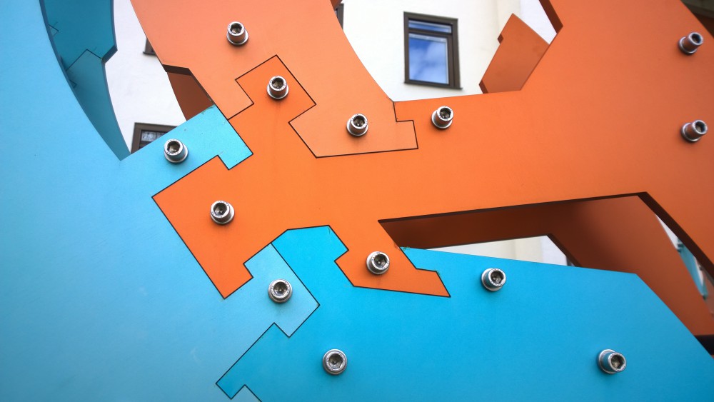 i 20mm tjock aluminium. Drygt 500st bultar.Epoxylimmade pusselmöten. Självbärande/låsande pusselkonstruktion. Ritad i CAD.