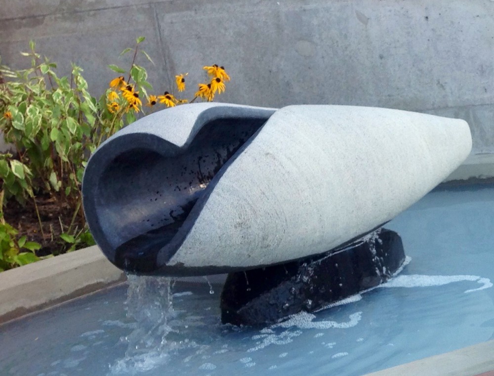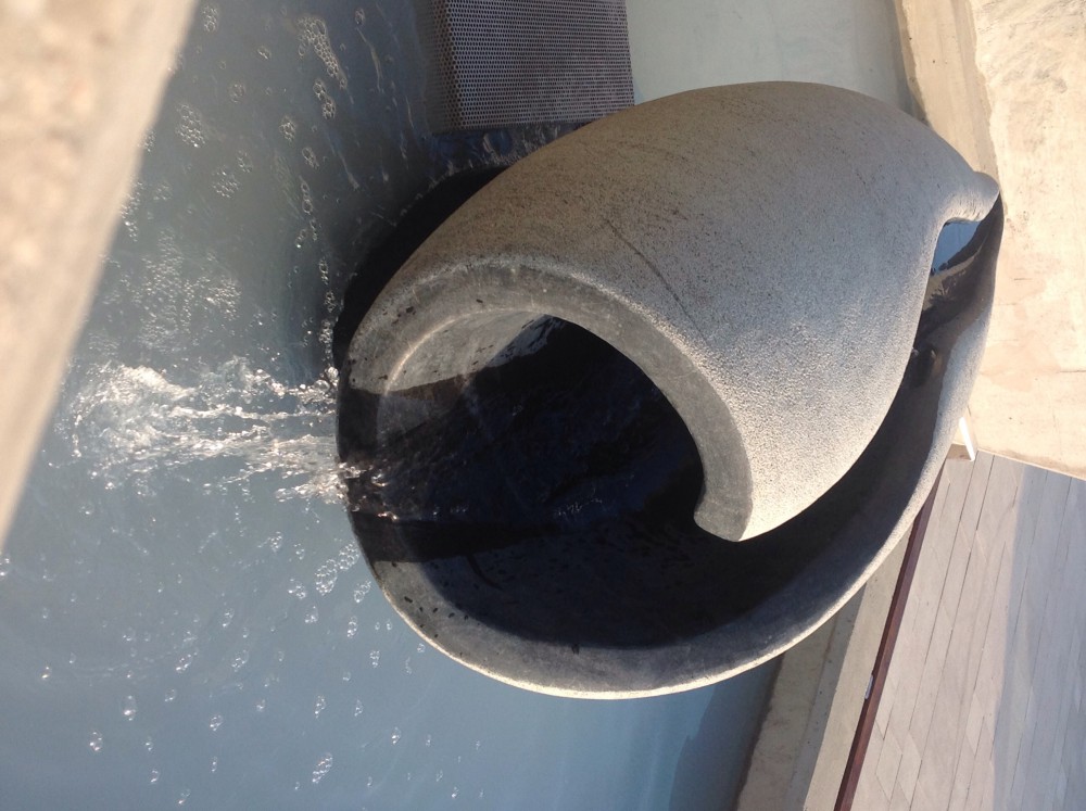Vattenskulptur vid entrén till badet